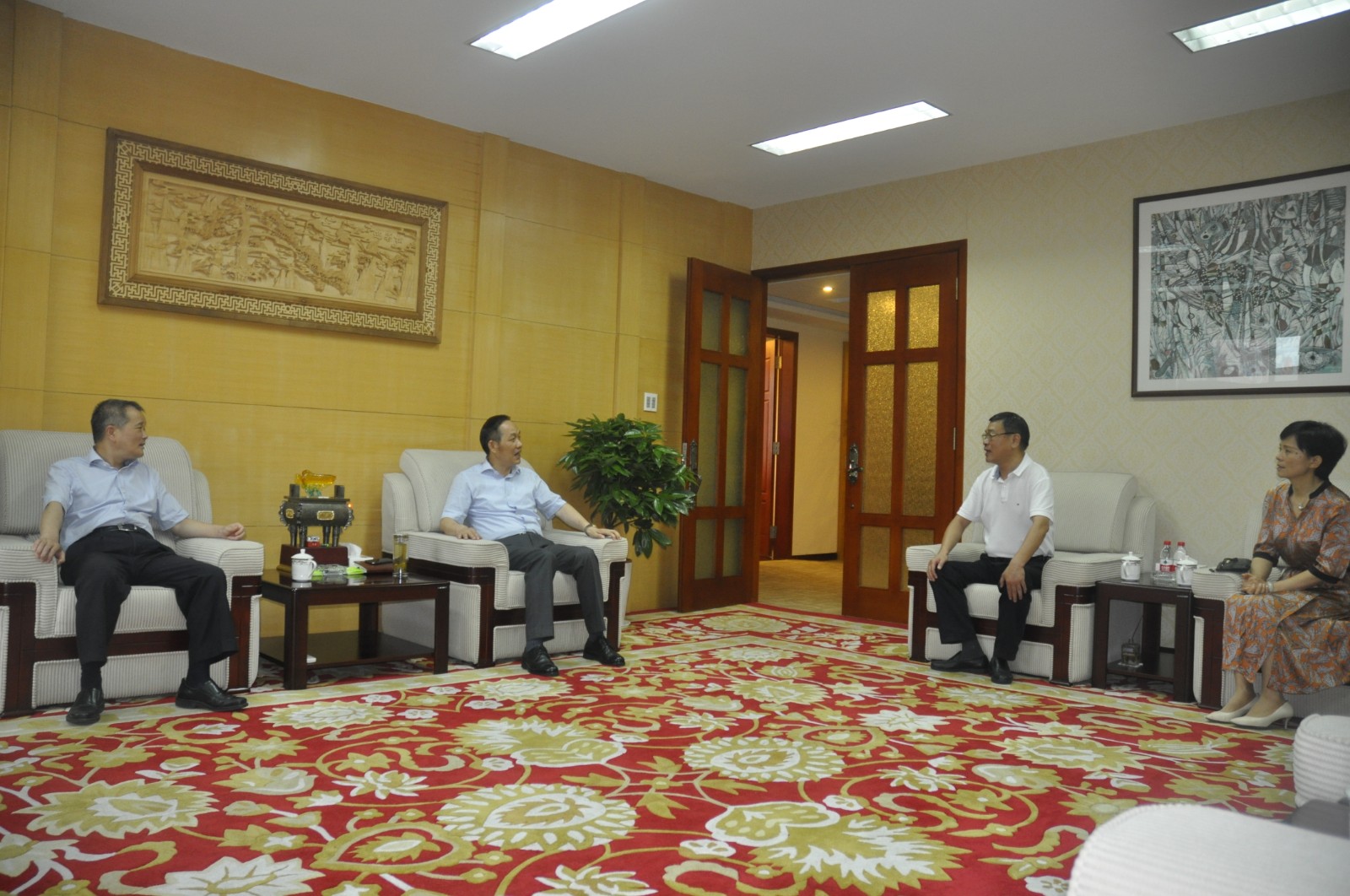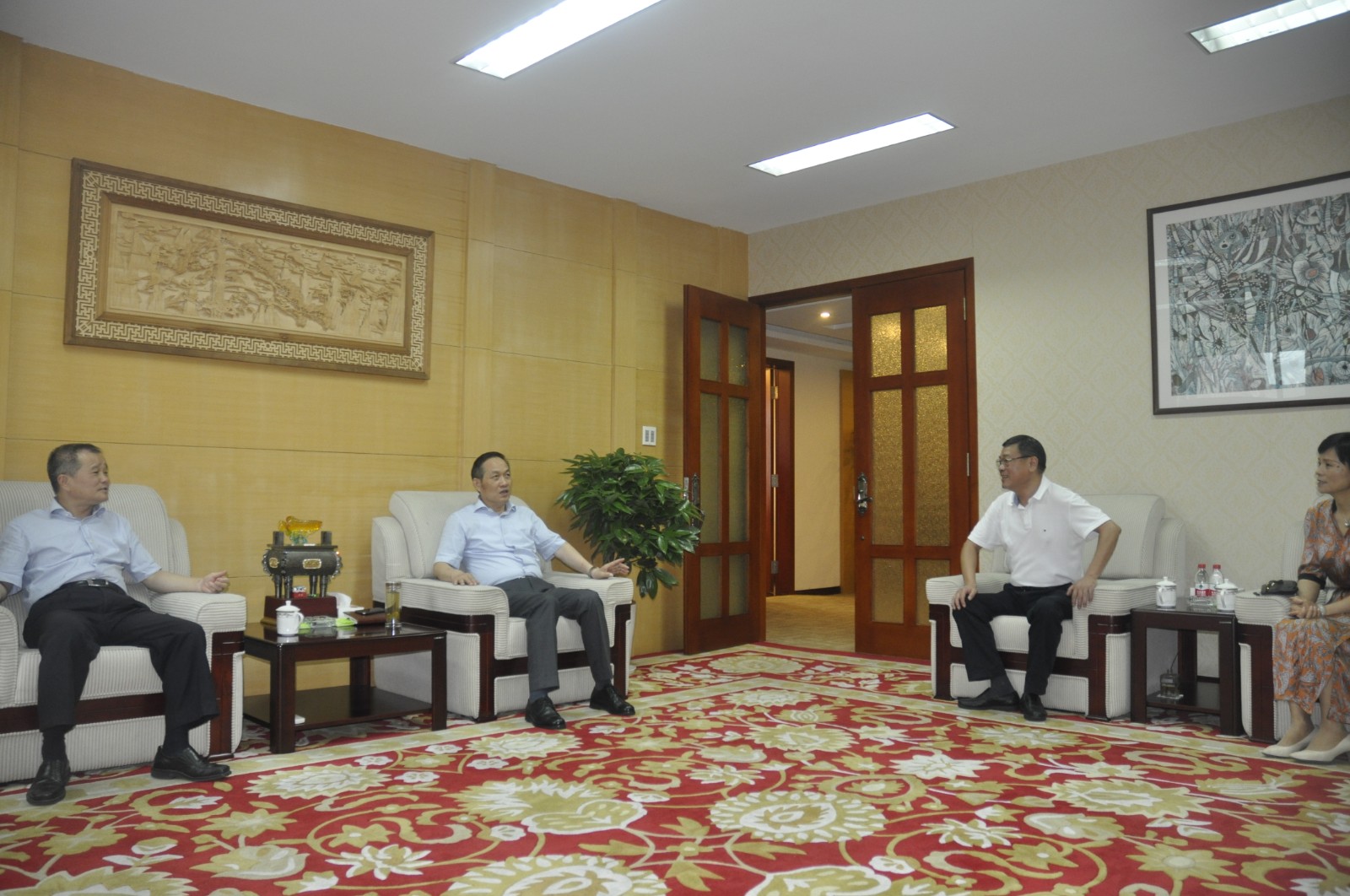 今天下昼,,,,,市人大常委会副主任郑荣胜、市人大常委会副秘书长、人事代表工会主任章一超、拱墅区人大常委会副主任徐美娟等各级向导一行来集团走访市人大代表集团董事长许荣根。。。。。相识集团经济生长情形以及在谋划历程中保存的一些难题。。。。。